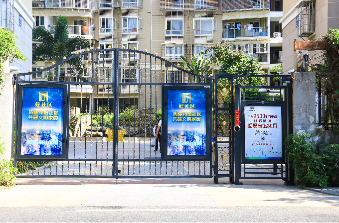 品牌营销需要个性化升级,为此,我们设计了社区广告门解决方案:好社区在各大住宅社区 安装社区大门与智能门禁系统,并在大门上装设广告灯箱。通过智能门禁系统与灯箱,形成与消费者线上线下的双线互动闭环,实现营销升级目的。